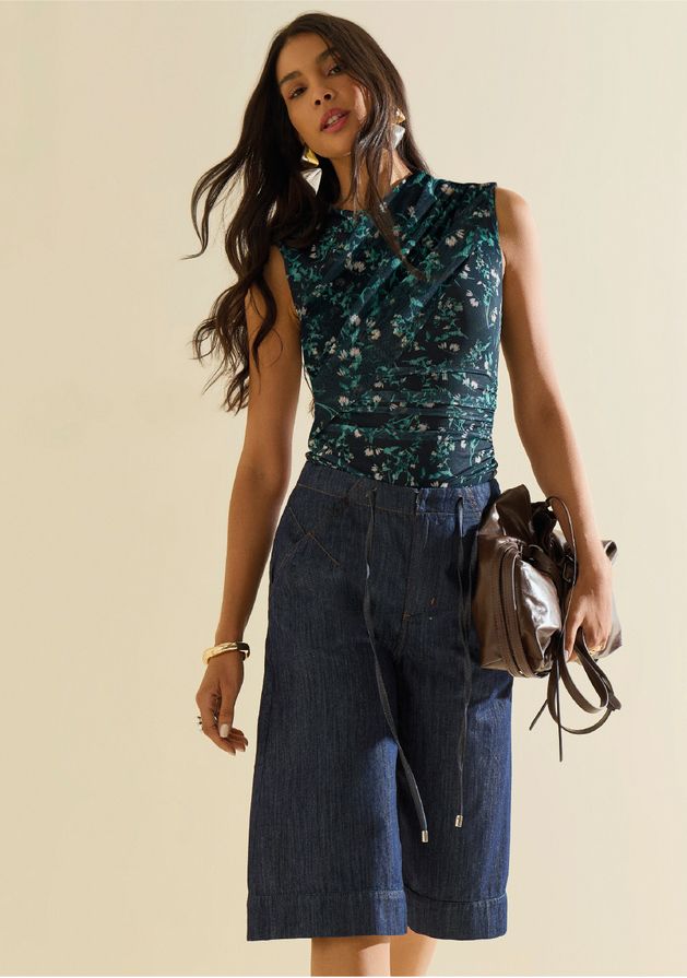 Body Morena Rosa Decote Careca Sem Manga Azul