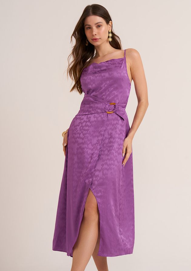 Vestido Zinco Midi Decote Degage Com Fivela Roxo