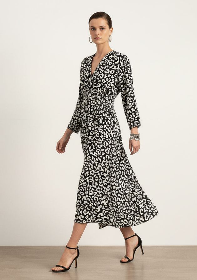 Vestido Ajustado Decote V Com Alça Midi Preto