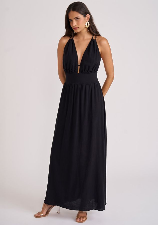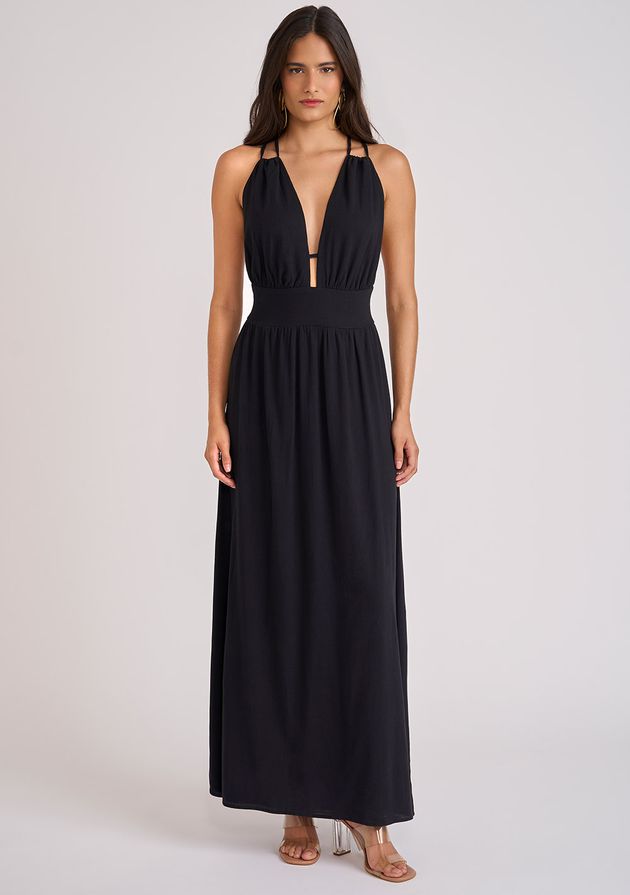 Vestido Zinco Longo Decote Profundo Detalhe Costas Preto