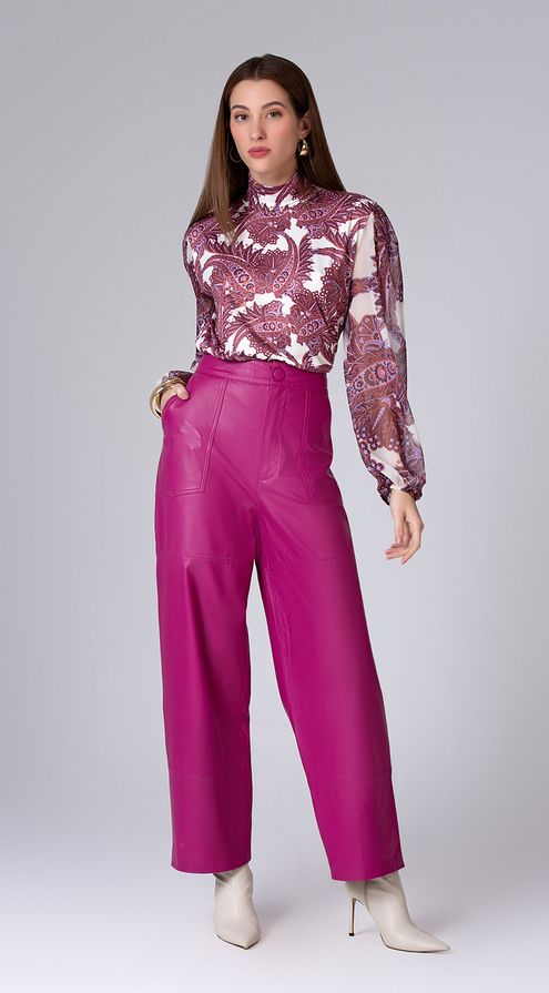 Calca Maria.Valentina Reta Cós Alto Com Recorte Rosa