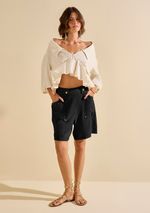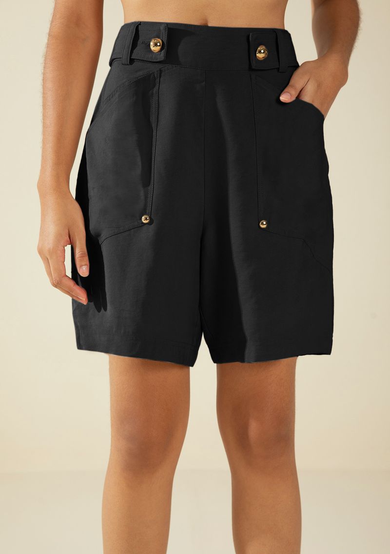 Bermuda Morena Rosa Reta Alta Preto
