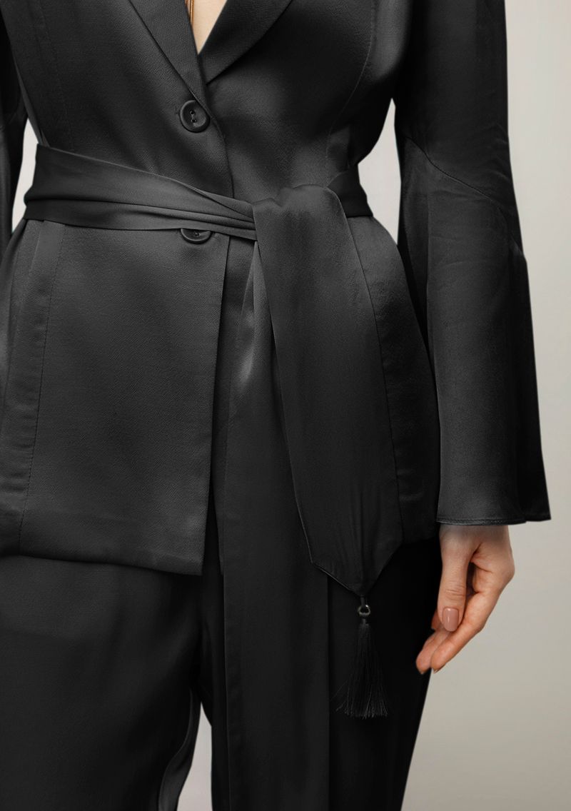 Blazer Iódice Ajustado Manga Longa Alongado Preto