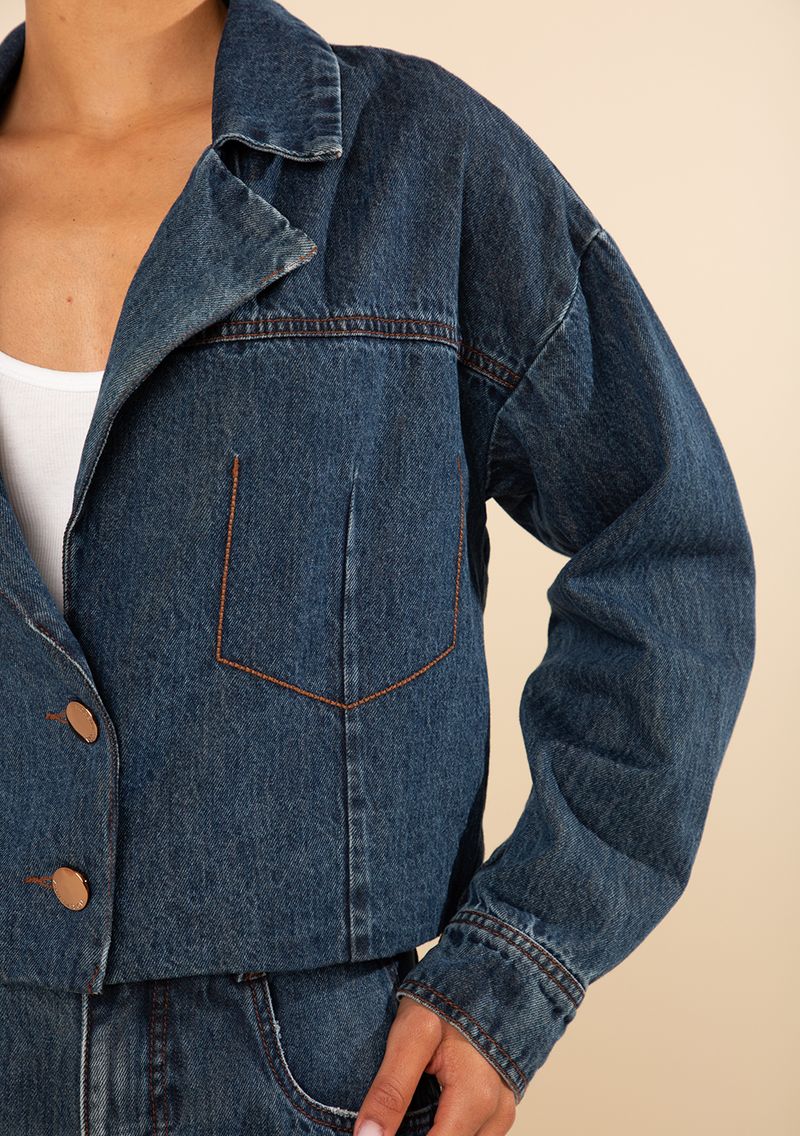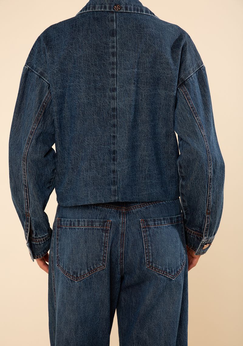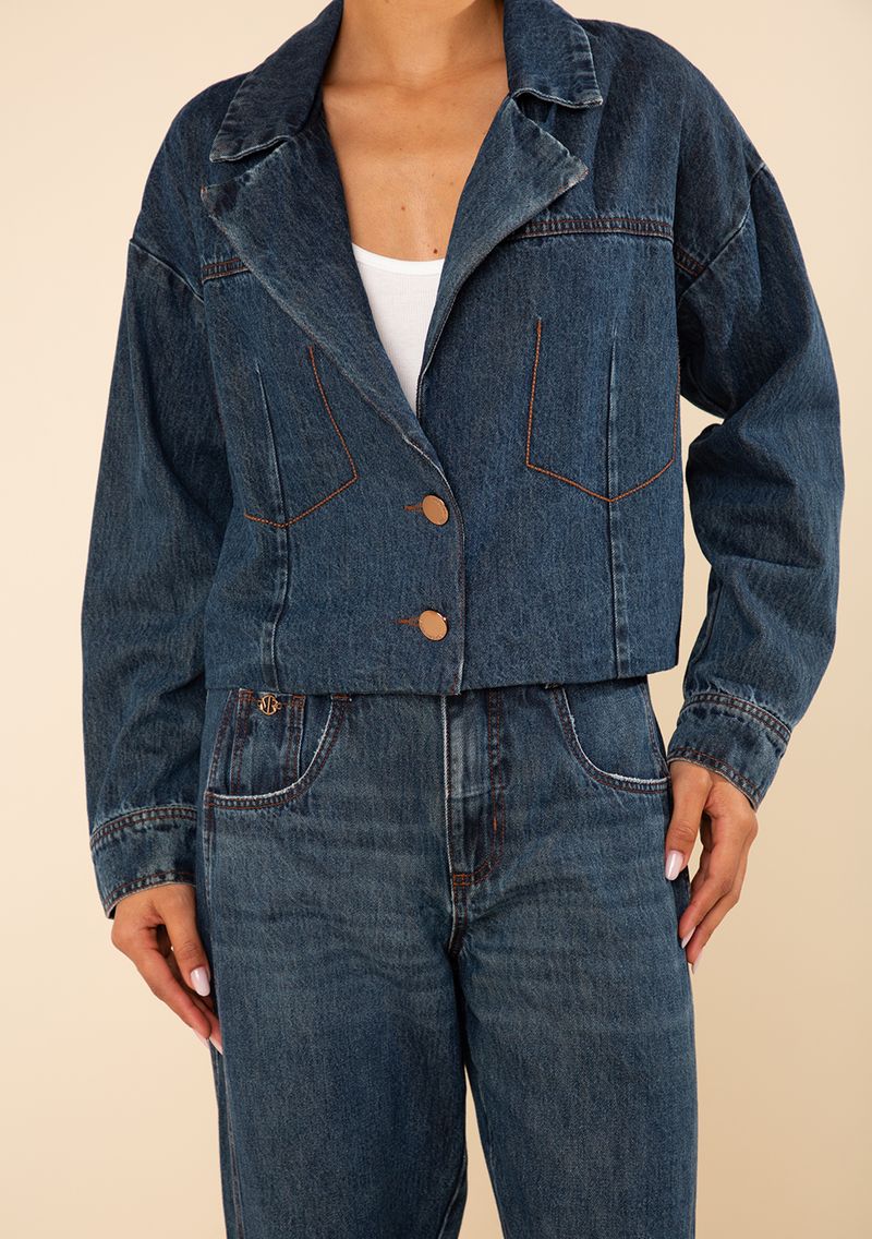 Blazer Morena Rosa Solto Manga Longa Padrão Azul