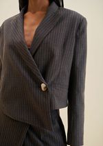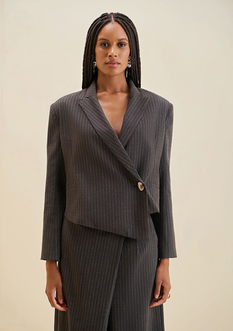 Blazer Morena Rosa Solto Manga Longa Padrão Cinza