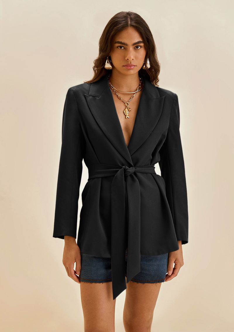 OUTLETFemininoRoupasBlazers e ParkasBlazer Morena Rosa Solto Manga Longa Padrão Preto