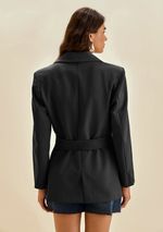 Blazer Morena Rosa Solto Manga Longa Padrão Preto