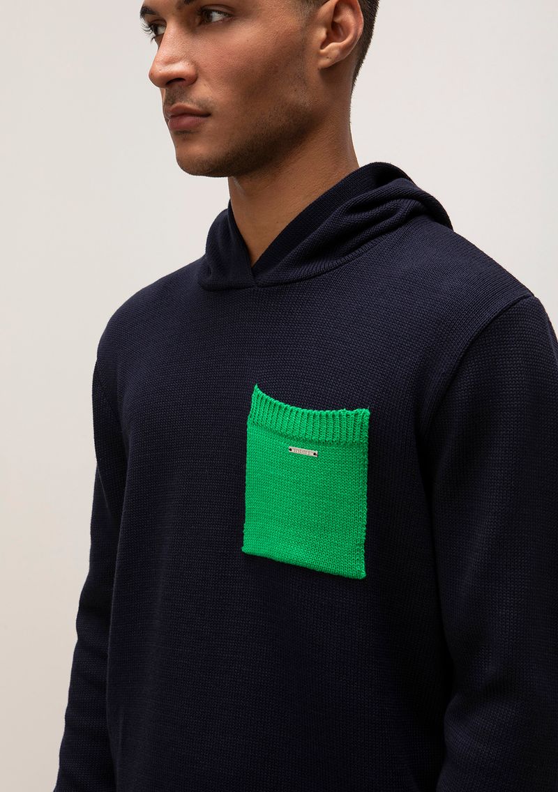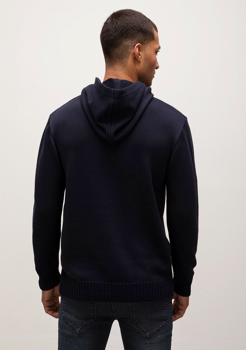 Blusa Capuz Manga Longa Tricôt Azul Marinho