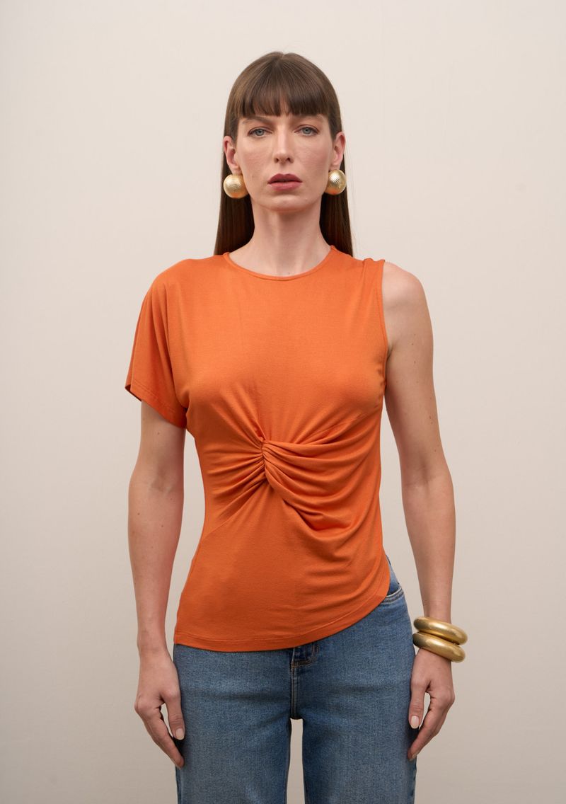 Blusa Iódice Ajustada Decote Careca Manga Curta Padrão Laranja