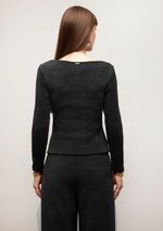 Blusa Iódice Ajustada Decote Transpassado Manga Longa Padrão Preto