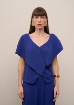 Blusa Iódice Ajustada Decote V Manga Curta Padrão Azul