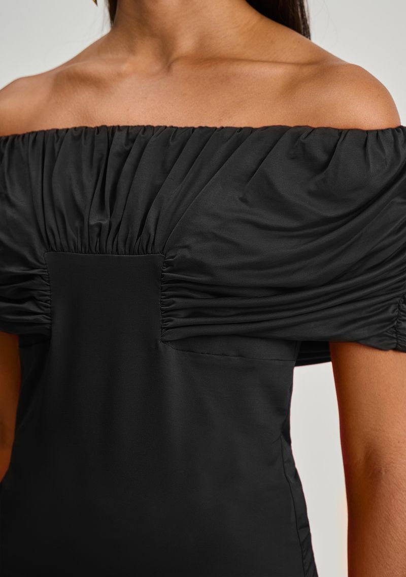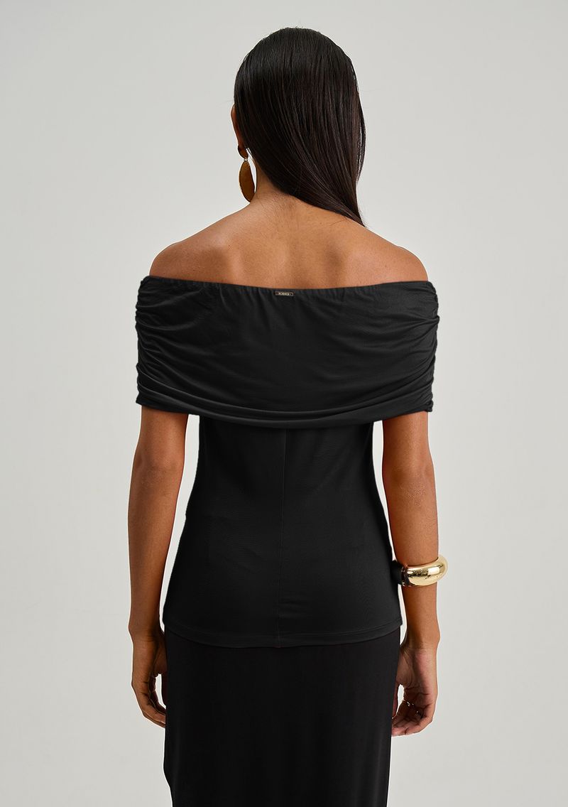 Blusa Iódice Ajustada Ombro A Ombro Manga Curta Padrão Preto