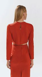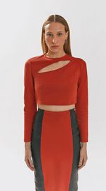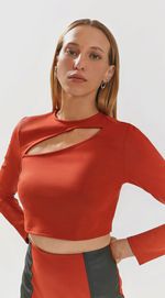 Blusa Iódice Decote Redondo Manga Longa Abertura Frente Laranja