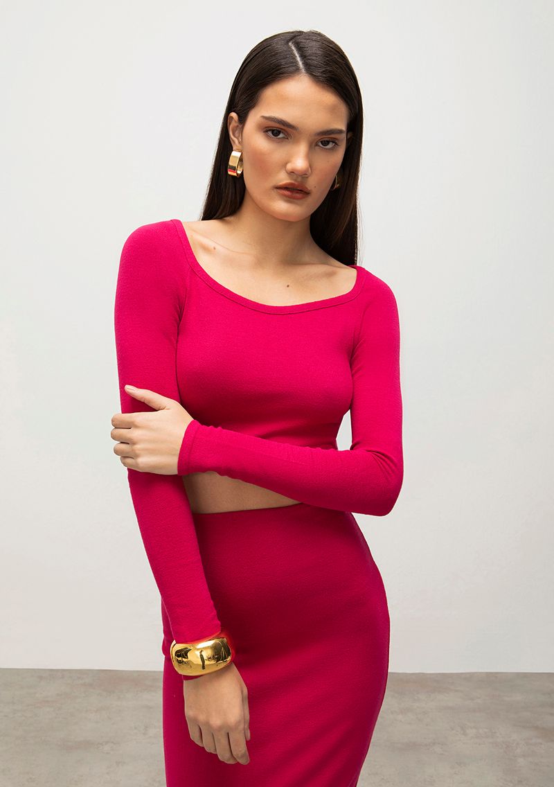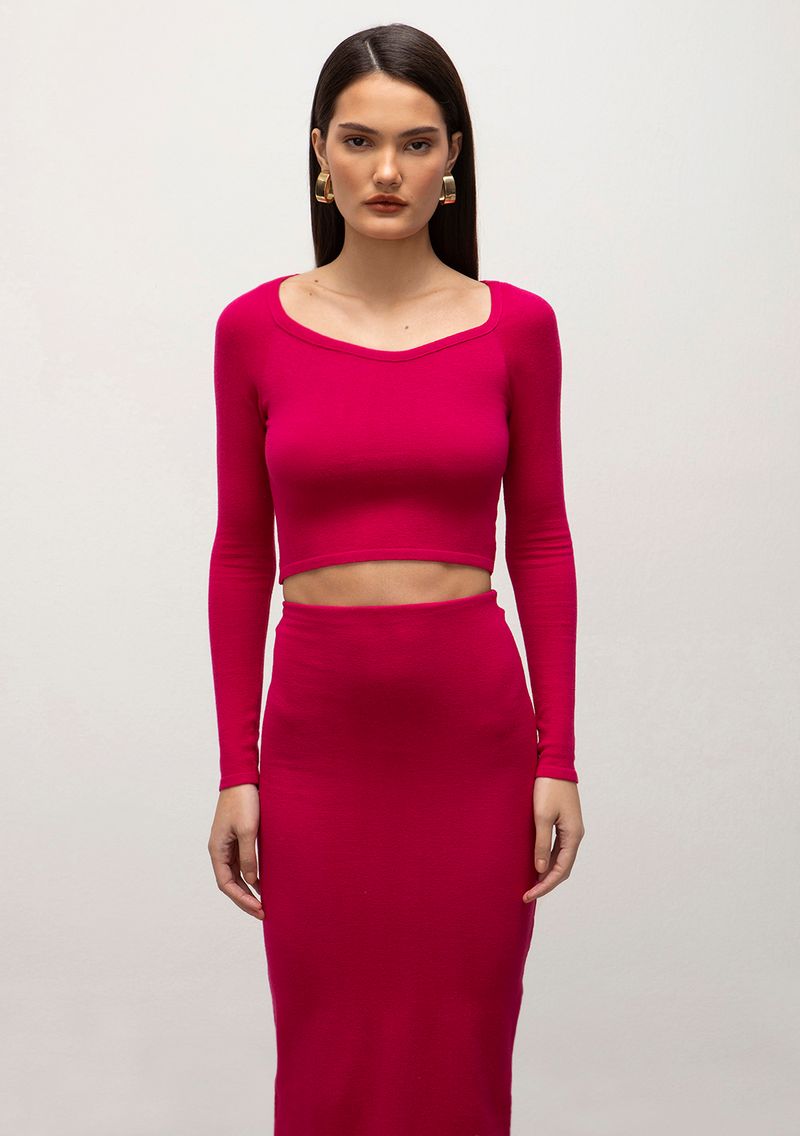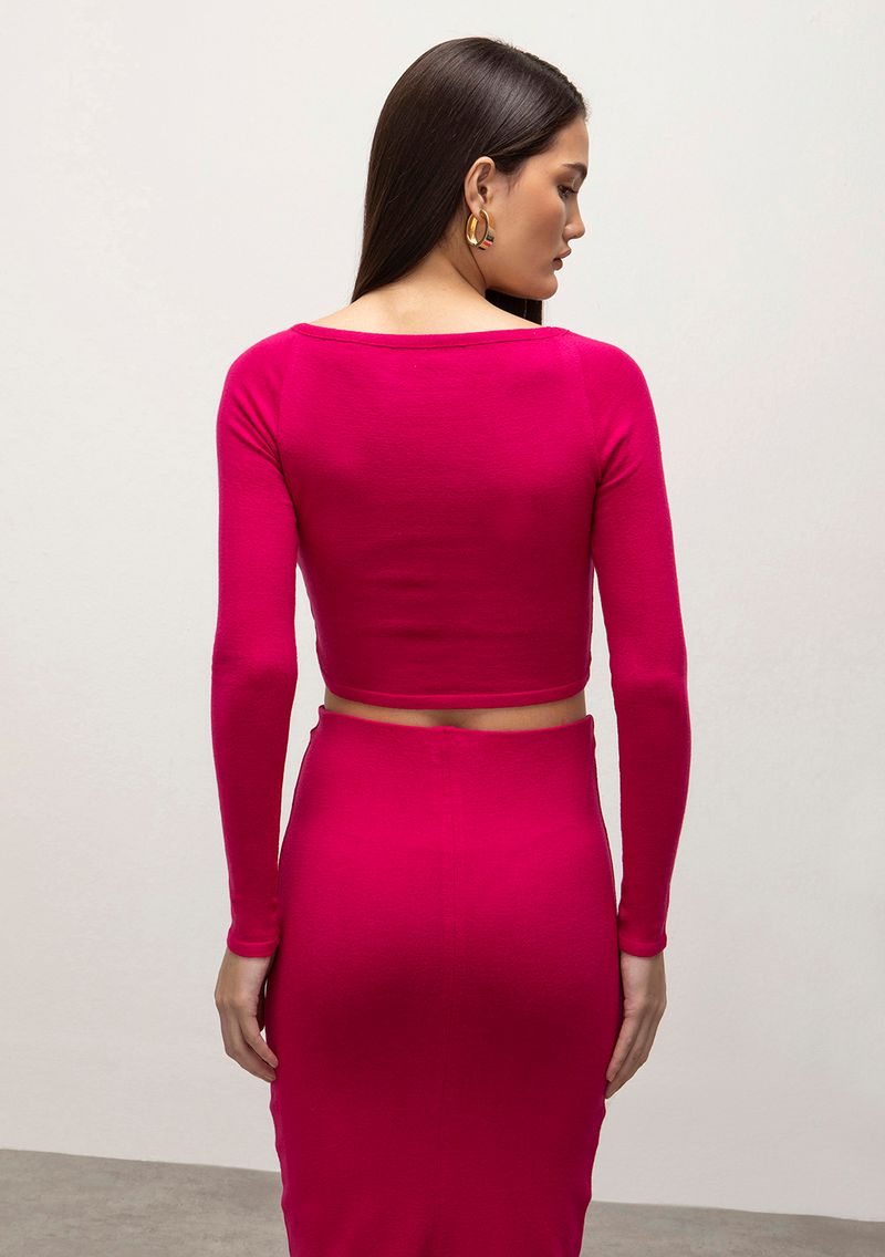 Blusa Iódice Decote V Manga Longa Tricôt Pink