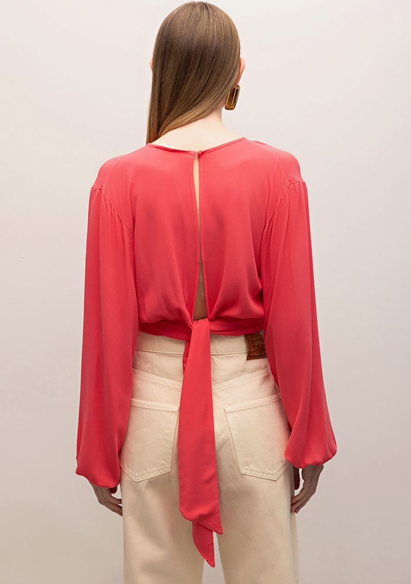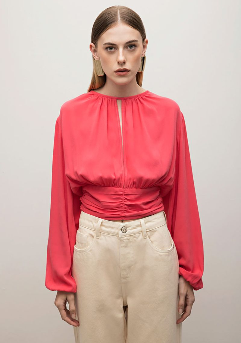 Blusa Iódice Gola Alta Manga Longa Abertura Frente Rosa