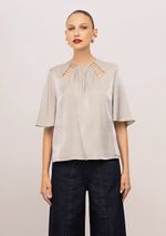 Blusa Iódice Solta Decote Careca Manga Curta Padrão Cinza