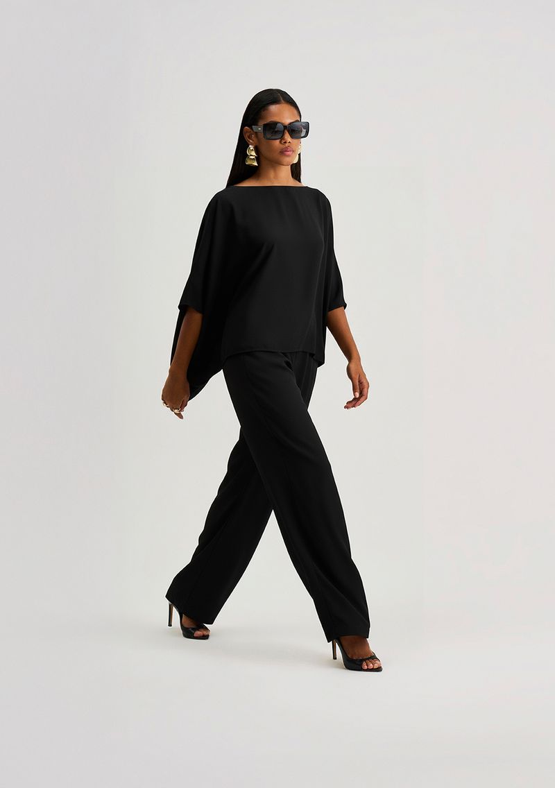 FemininoRoupasBlusasTricotsAlfaiatariaBlusa Iódice Solta Decote Careca Manga Curta Padrão Preto