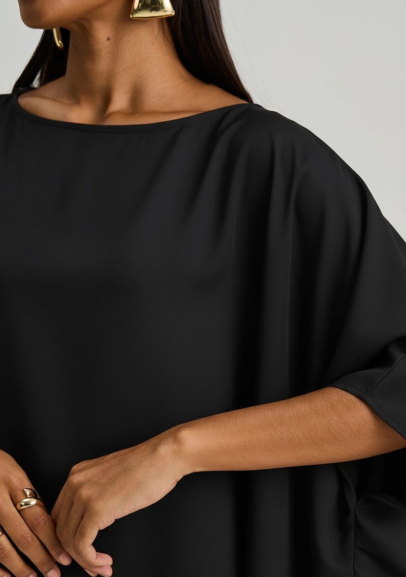 Blusa Iódice Solta Decote Careca Manga Curta Padrão Preto