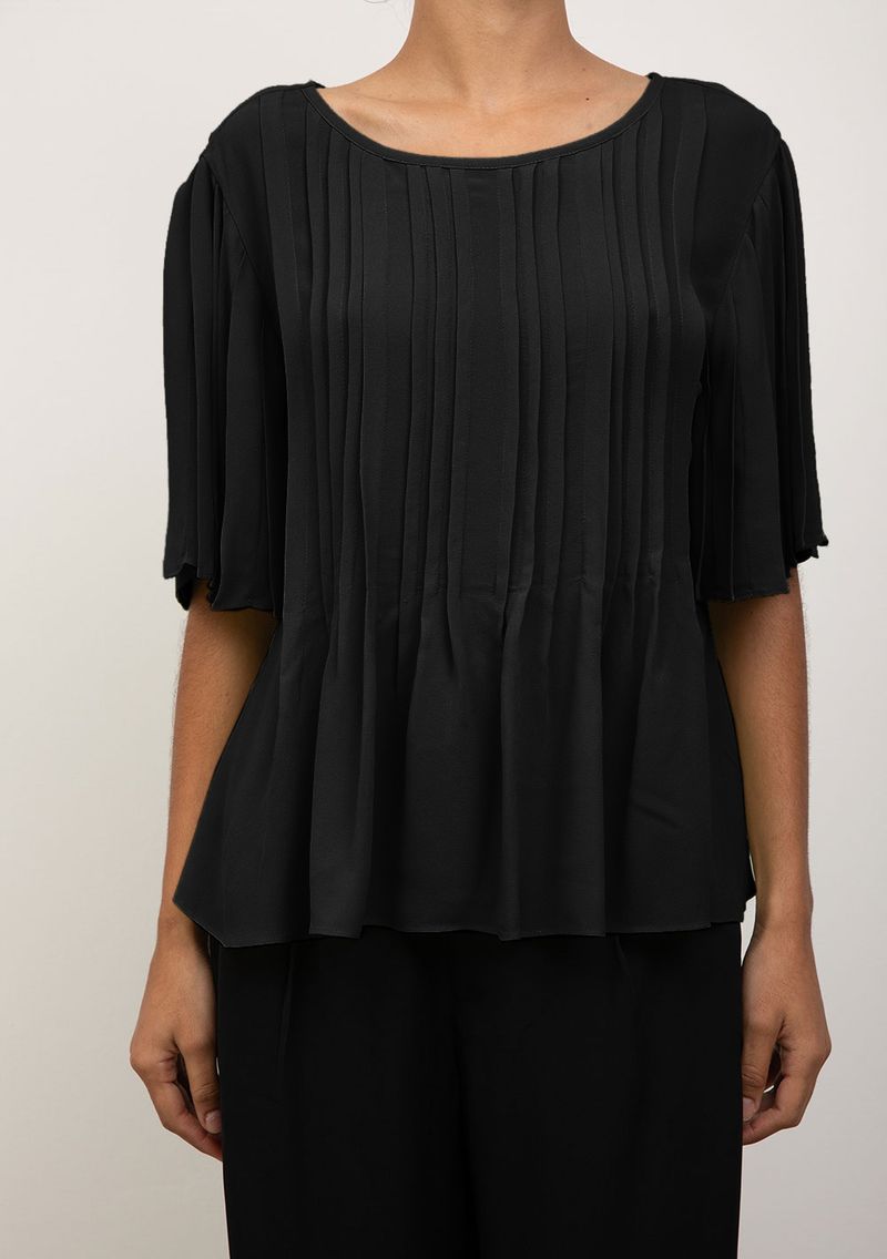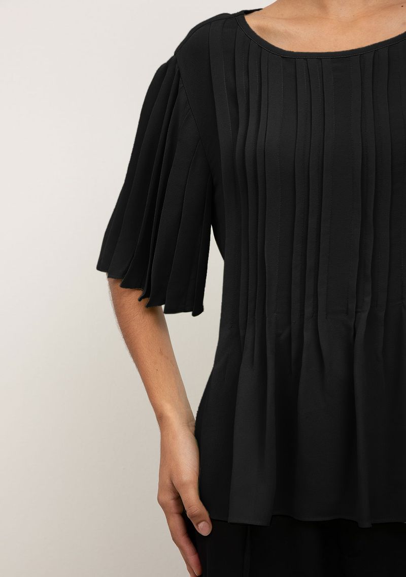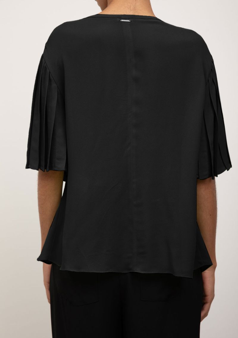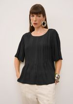 Blusa Iódice Solta Decote Careca Manga Curta Padrão Preto