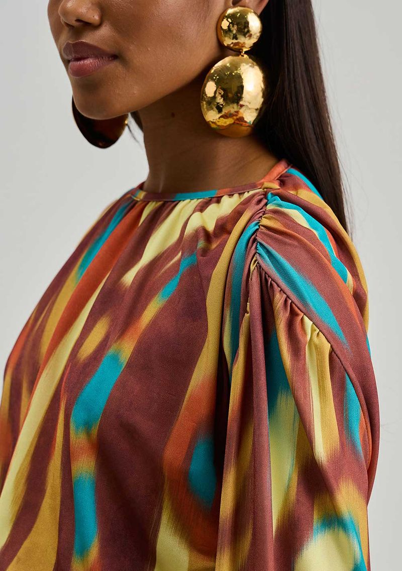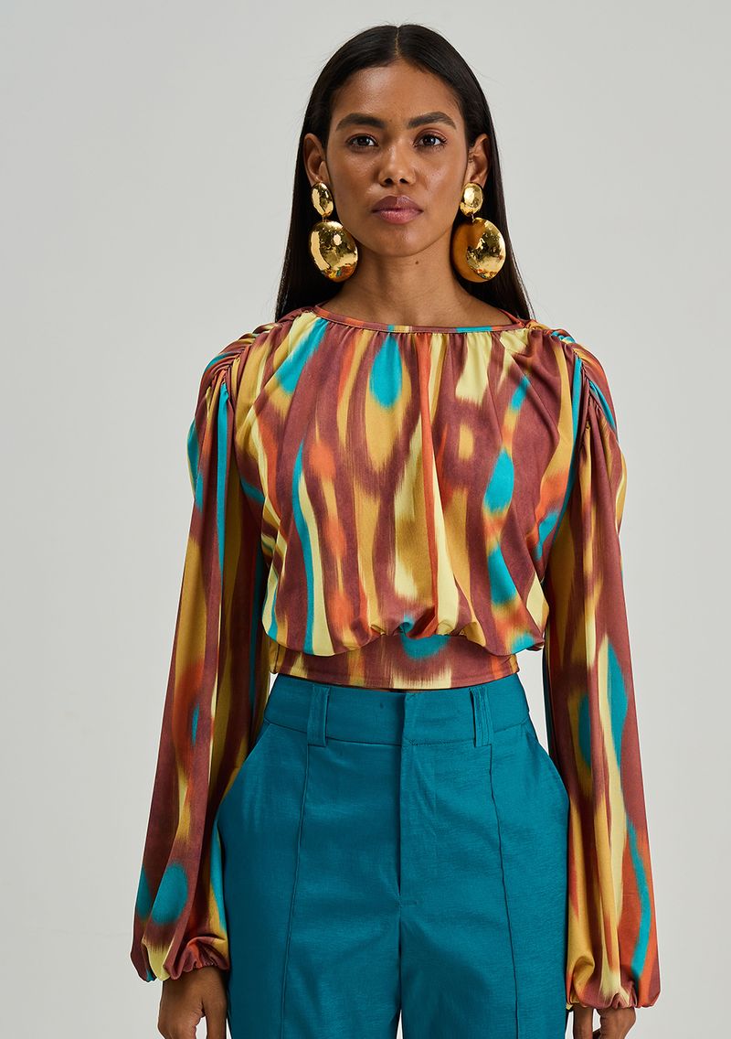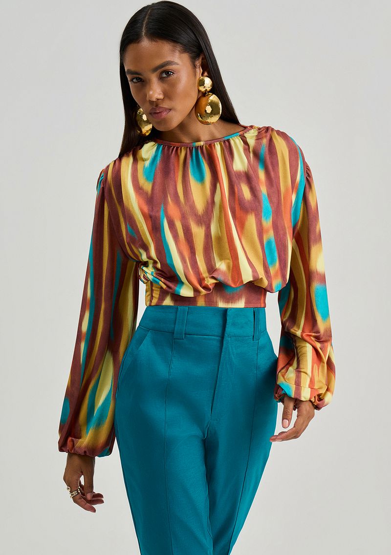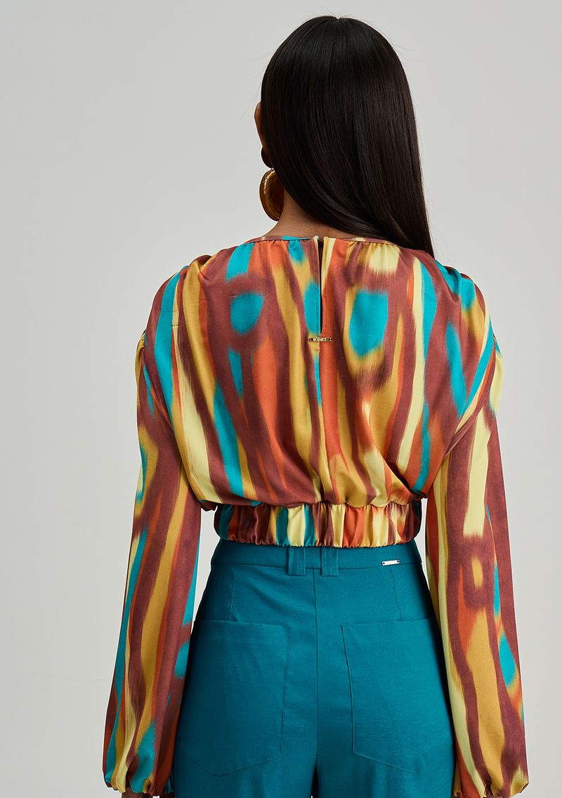 Blusa Iódice Solta Decote Careca Manga Longa Cropped Amarelo