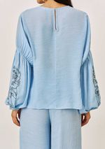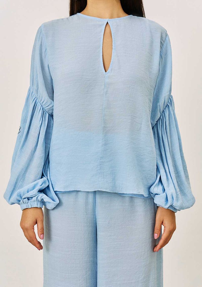 Blusa Iódice Solta Decote Careca Manga Longa Padrão Azul