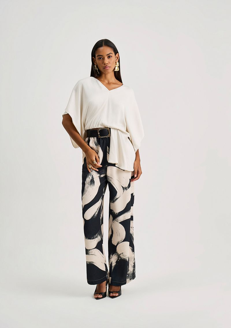 Blusa Iódice Solta Decote V Manga Curta Cropped Off White