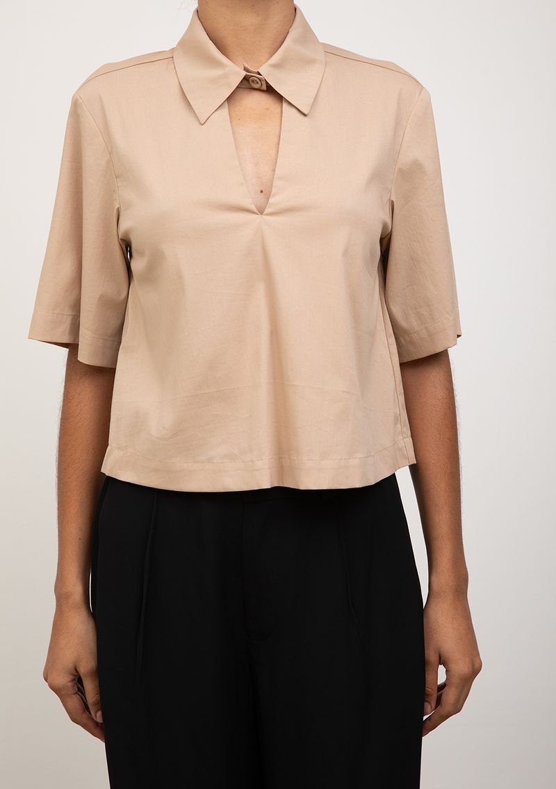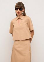 Blusa Iódice Solta Gola Clássica Manga Curta Cropped Bege