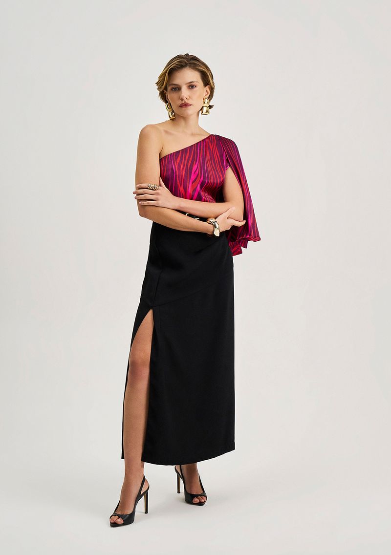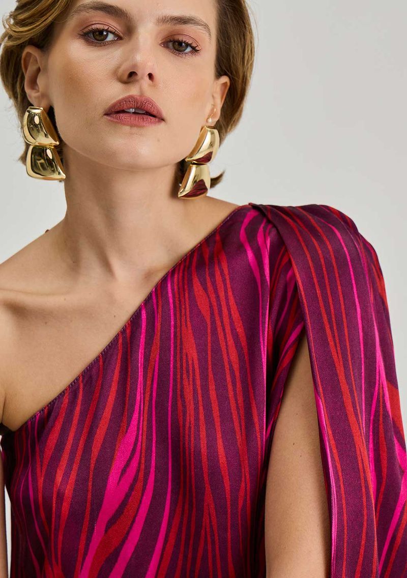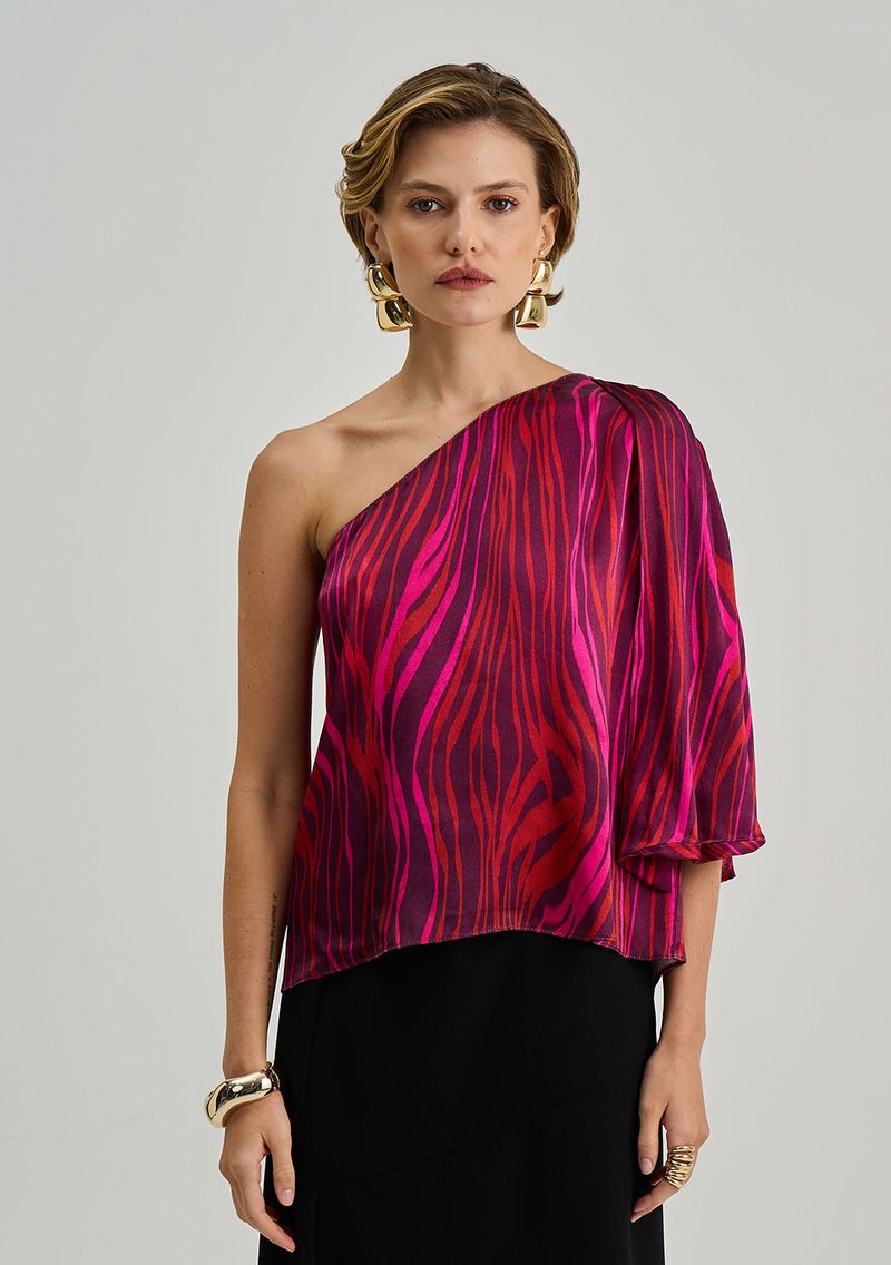 Blusa Iódice Solta Um Ombro Só Manga Curta Padrão Vermelho