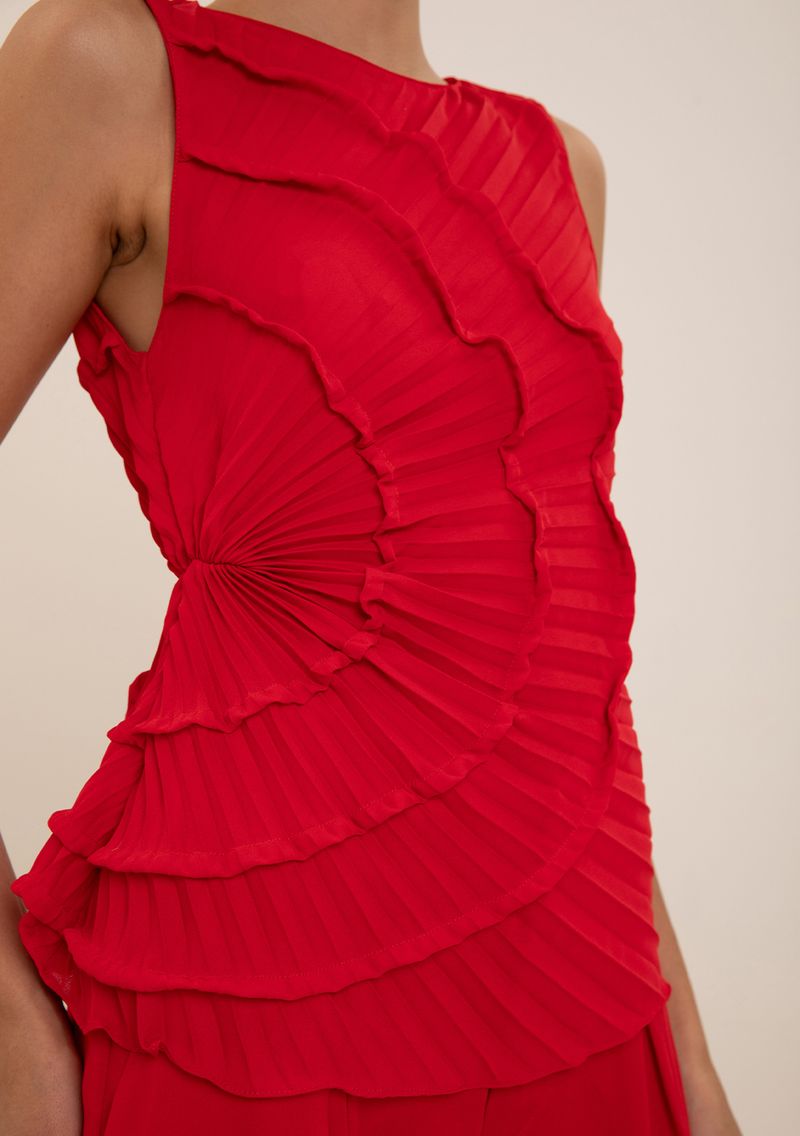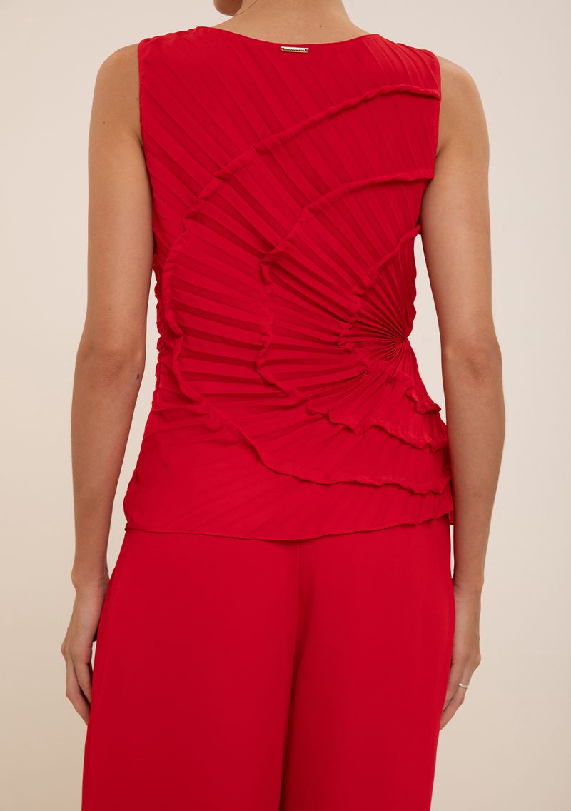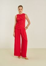 Blusa Maria.Valentina Ajustada Decote Canoa Manga Curta Padrão Vermelho
