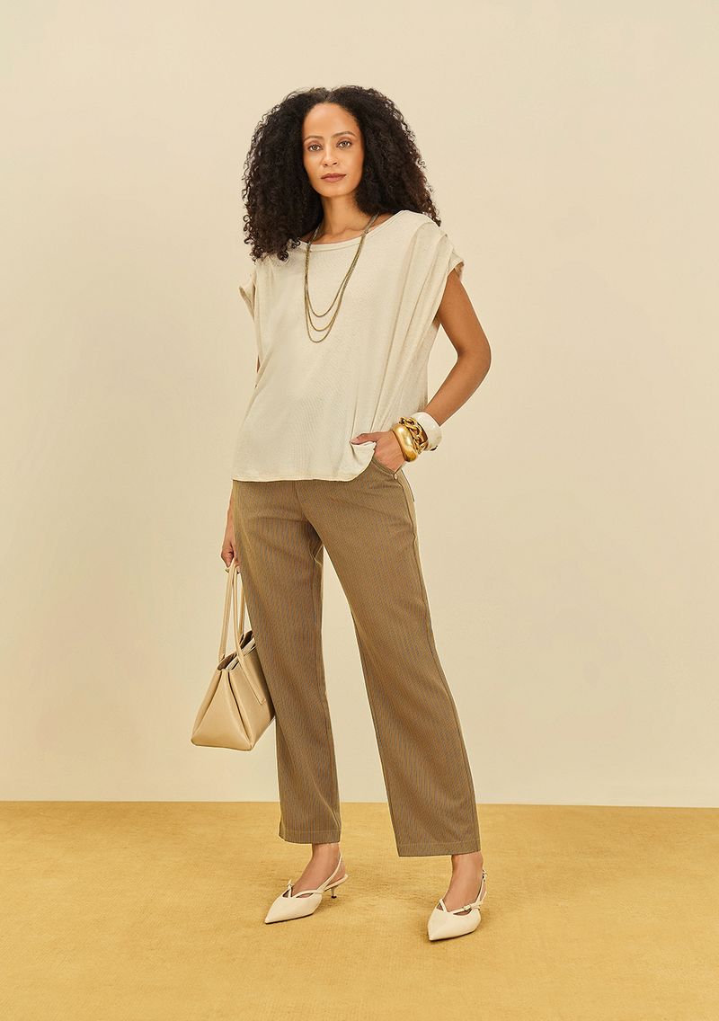 Blusa Maria.Valentina Ajustada Decote Careca Manga Curta Padrão Bege