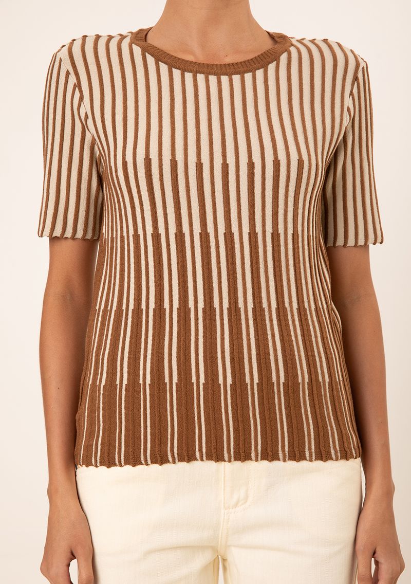 FemininoRoupasBlusasBlusa Maria.Valentina Ajustada Decote Careca Manga Curta Padrão Marrom
