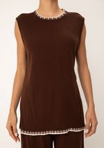 Blusa Maria.Valentina Ajustada Decote Careca Sem Manga Alongada Marrom