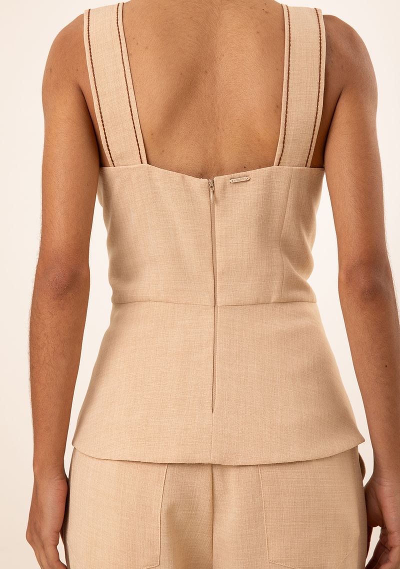 FemininoRoupasBlusasBlusa Maria.Valentina Ajustada Decote Reto Manga Curta Padrão Bege