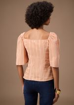 Blusa Maria.Valentina Ajustada Decote V Manga Curta Padrão Bege