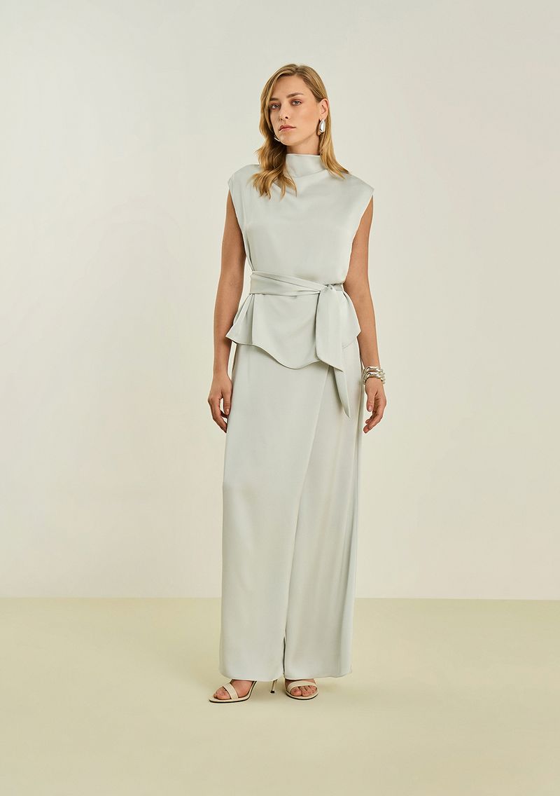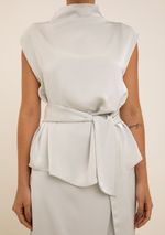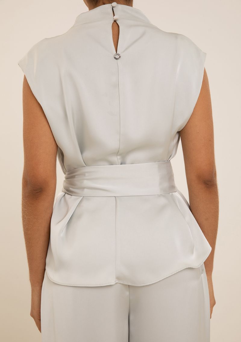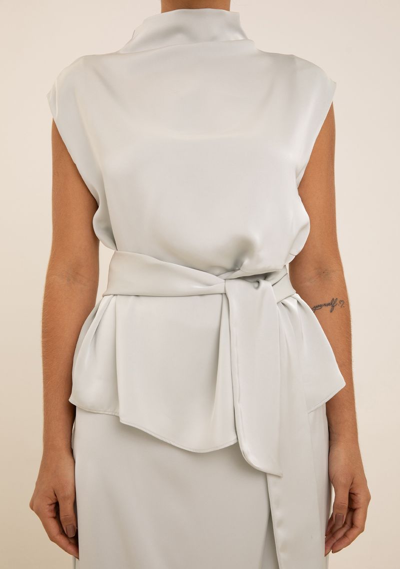 Blusa Maria.Valentina Ajustada Gola Alta Manga Curta Padrão Cinza