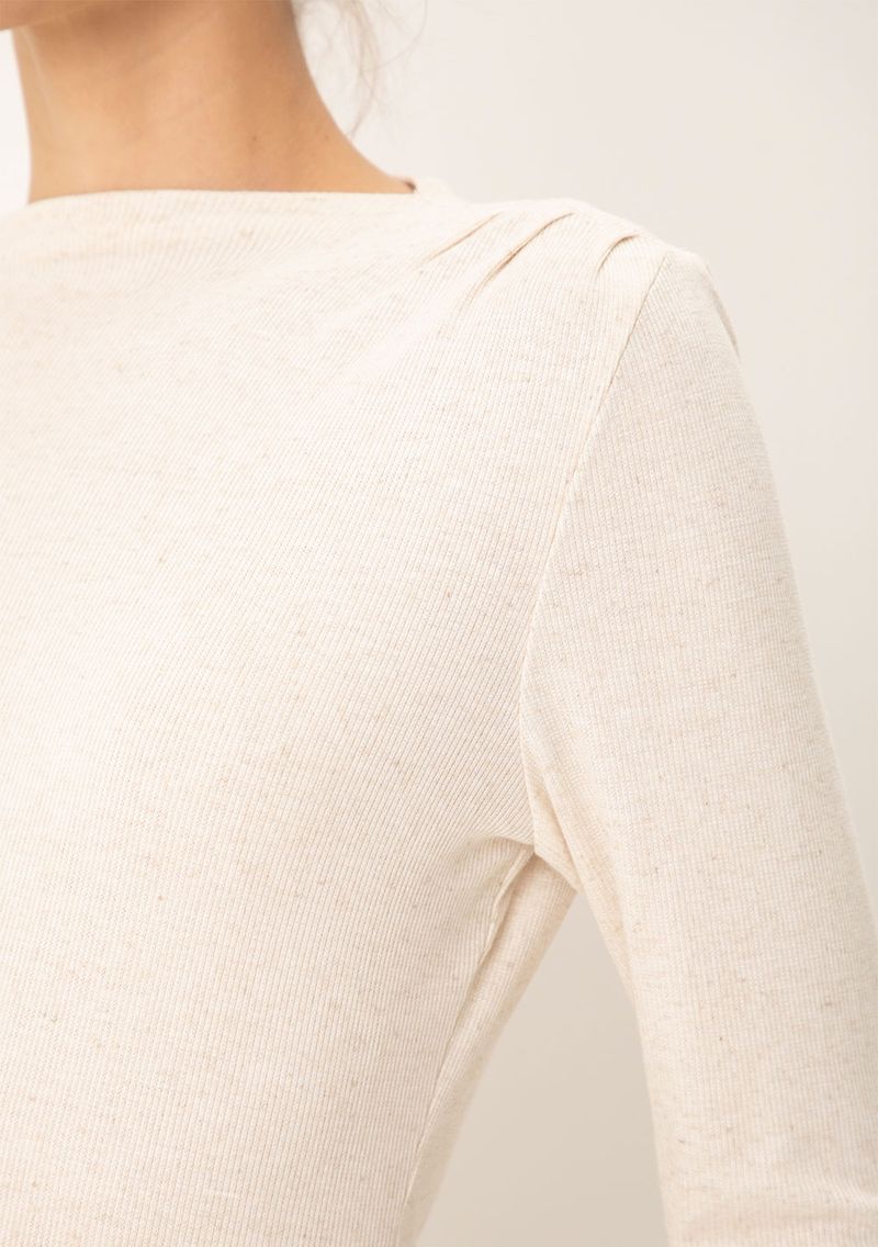 Blusa Maria.Valentina Ajustada Gola Alta Manga Longa Padrão Bege