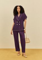 Blusa Maria.Valentina Ajustada Gola Clássica Manga Curta Padrão Roxo