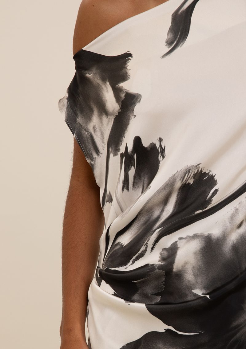Blusa Maria.Valentina Ajustada Um Ombro Só Manga Curta Alongada Preto