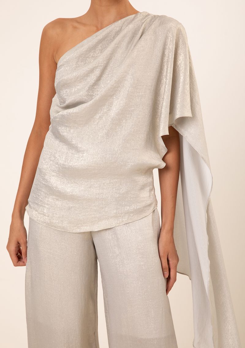 FemininoRoupasBlusasBlusa Maria.Valentina Ajustada Um Ombro Só Manga Curta Padrão Cinza