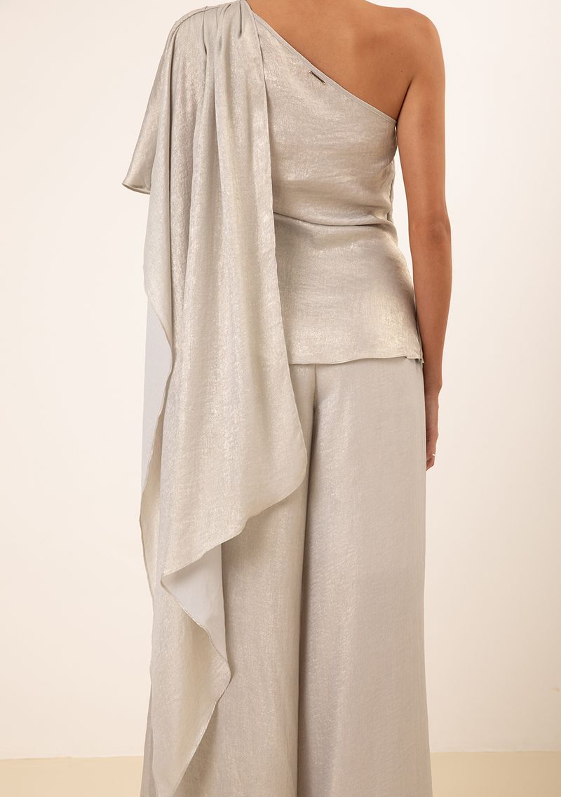 Blusa Maria.Valentina Ajustada Um Ombro Só Manga Curta Padrão Cinza