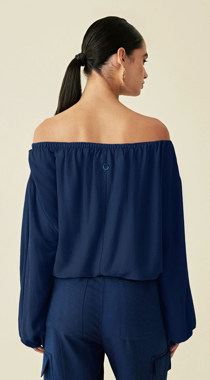 OUTLETFemininoRoupasBlusasBlusa Maria.Valentina Decote Canoa Manga Longa Com Franzido Azul Marinho