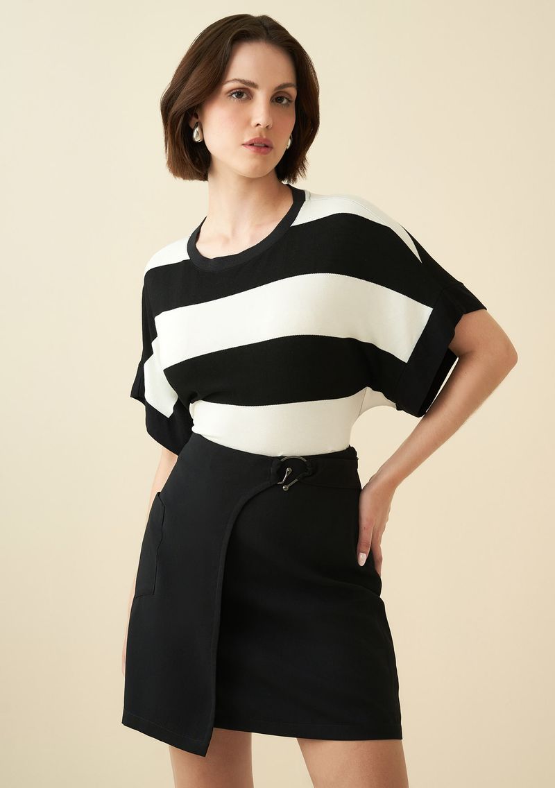 Blusa Maria.Valentina Decote Redondo Manga Morcego Básica Preto