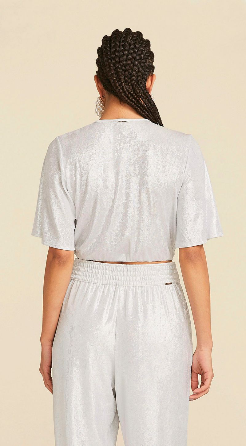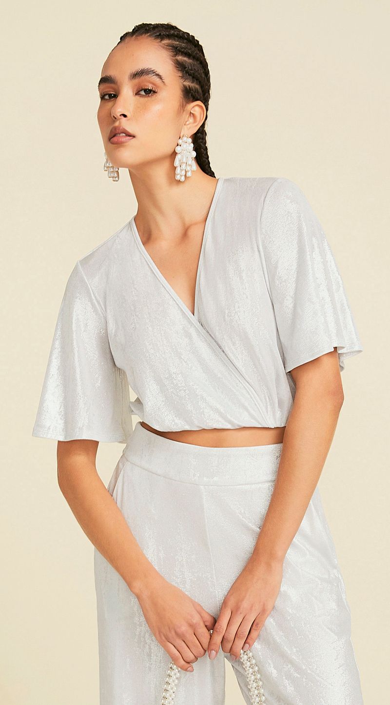 OUTLETFemininoRoupasBlusasBlusa Maria.Valentina Decote Transpassado Manga Godê Com Brilho Prata