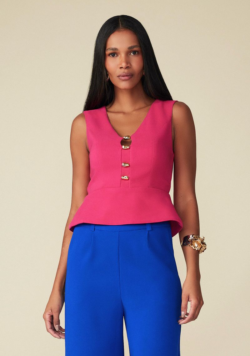 Blusa Maria.Valentina Decote V Cavada Com Metal Pink