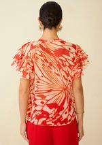 Blusa Maria.Valentina Decote V Manga Curta Amarração Frente Vermelho