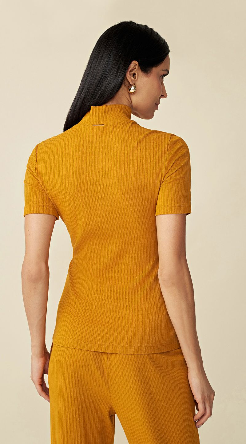 OUTLETFemininoRoupasBlusasBlusa Maria.Valentina Gola Alta Manga Curta Abertura Decote Amarelo