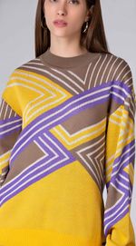 Blusa Maria.Valentina Gola Alta Manga Longa Tricôt Amarelo