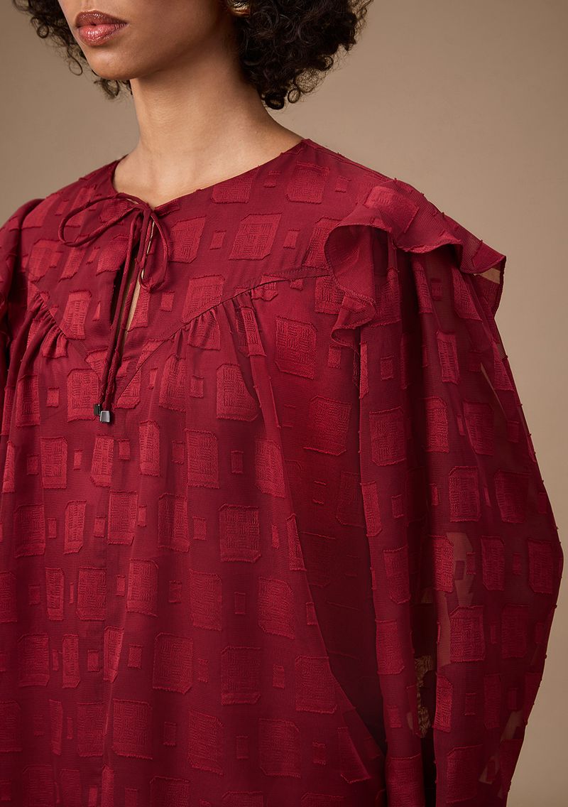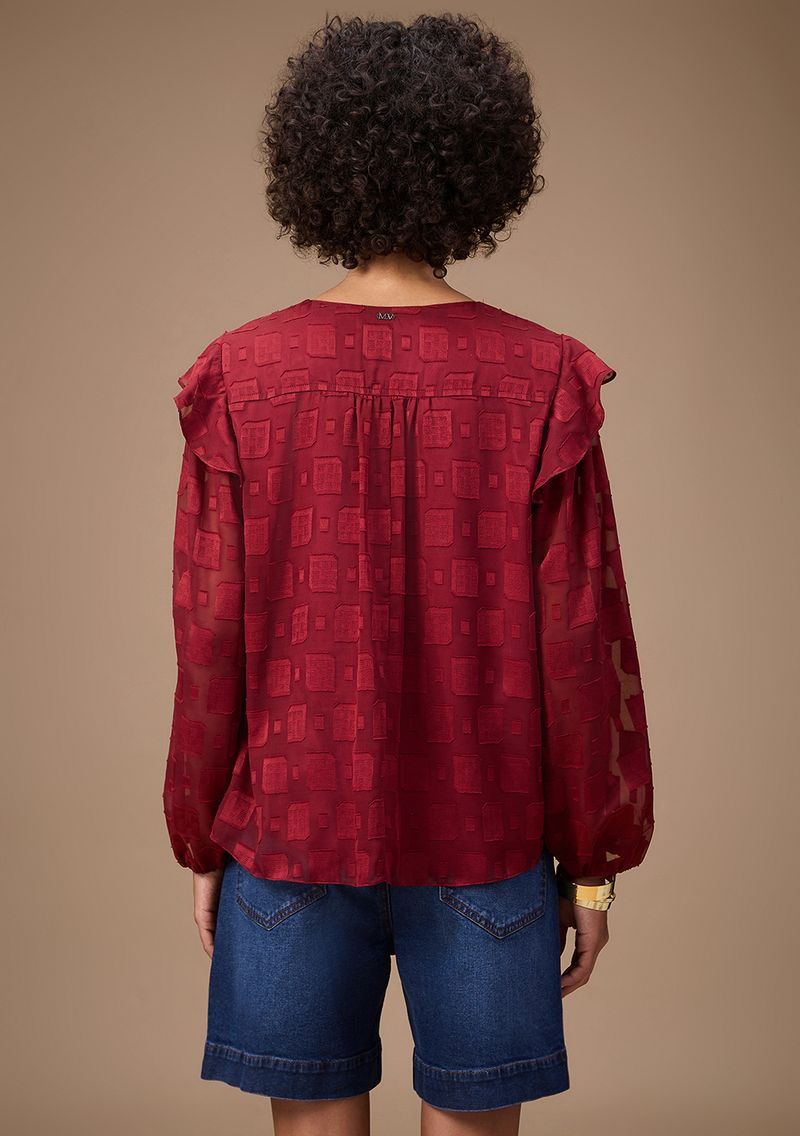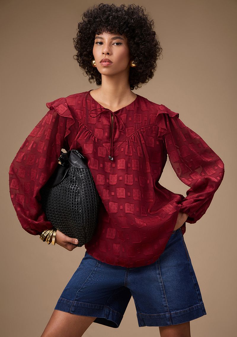 Blusa Maria.Valentina Oversized Decote Careca Manga Longa Padrão Bordo