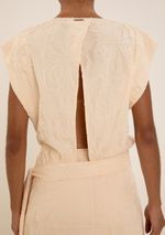 Blusa Maria.Valentina Solta Decote Canoa Manga Curta Cropped Bege