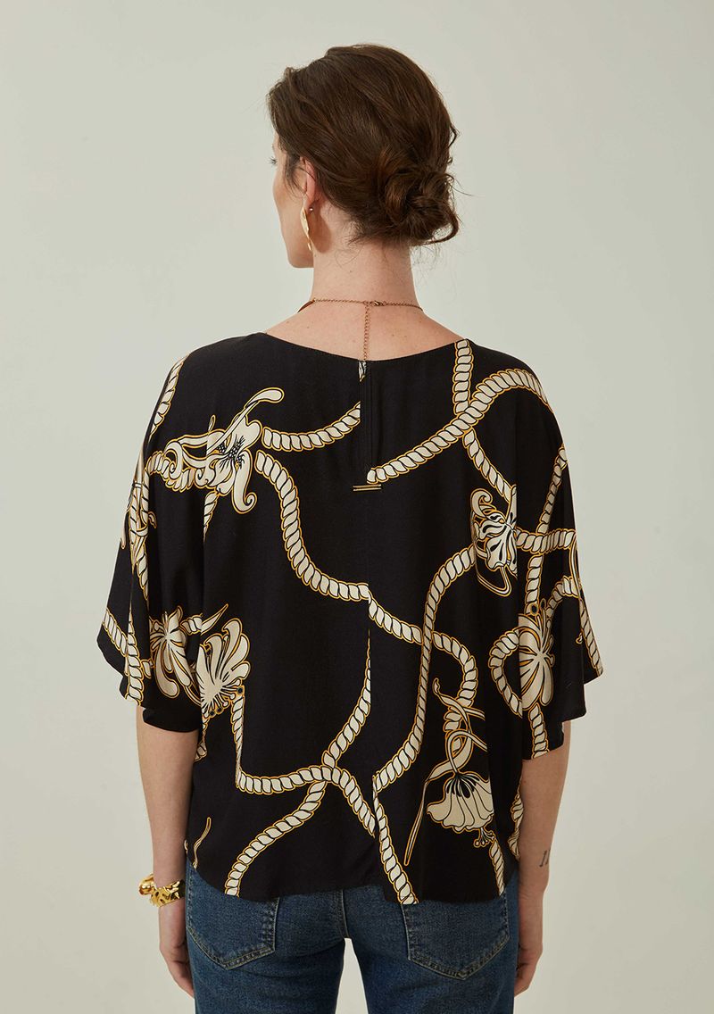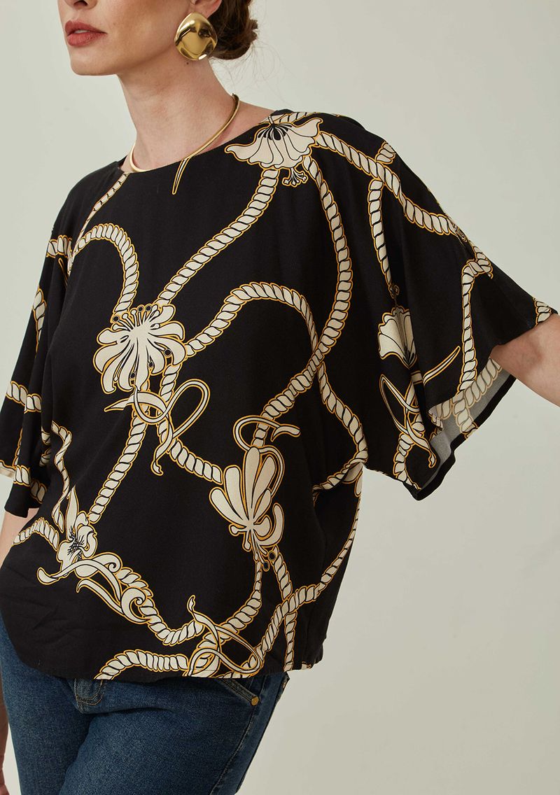 Blusa Maria.Valentina Solta Decote Canoa Manga Curta Padrão Preto